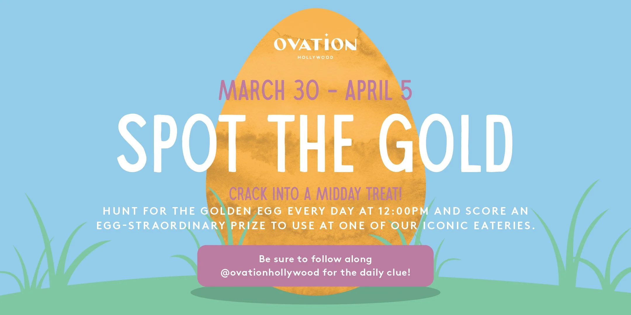 Crack into a midday treat! Get ready to scramble, because our Golden Egg Hunt is on. Starting March 30 through April 5, we’re hiding one elusive Golden Egg somewhere on the property every single day.